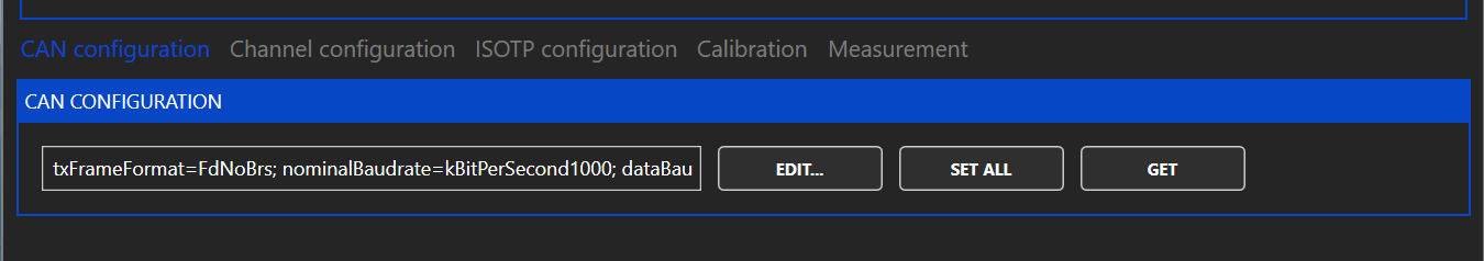 CAN baudrates and the uses of bitrate switching can be configured under "CAN CONFIGURATION".