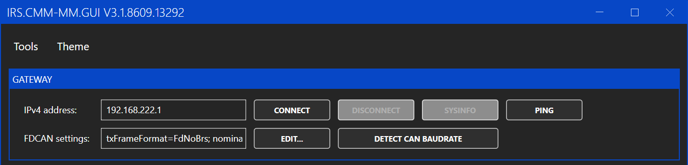 For CAN-FD communication a DBC file is available on request. For communication via Ethernet the tool "IRS.CMM-xCH" can be used. It can be downloaded from https://docs.irs.systems/. Alternatively the "IRS.CMM-xCH.Shared.dll" can be used to integrate the CMM-xCH modules into your Software.