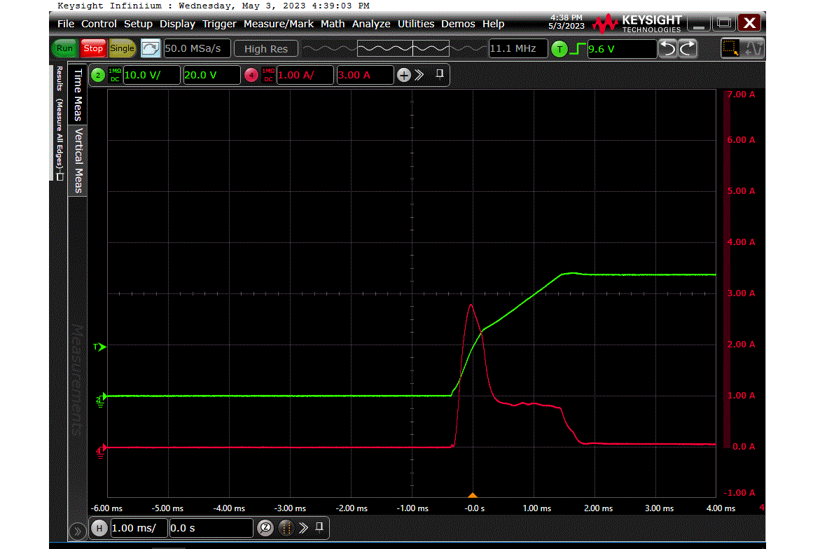 Inrush current for < 1ms @ dU/dt ≈ 20V/ms, 24V supply